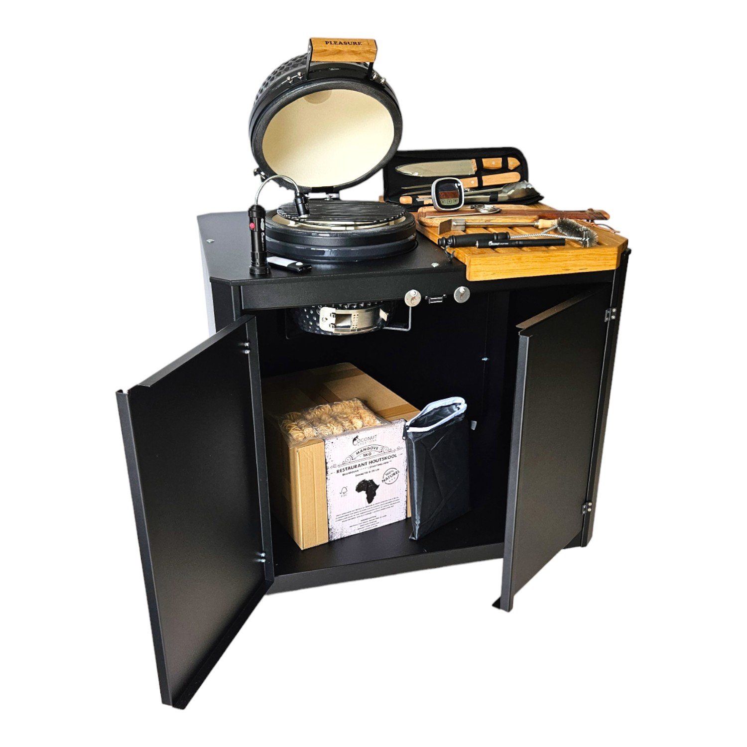 Upgrade je buitenruimte met de Coconut Creations Pleasure combideal! Inclusief Coconut Creations Pleasure rechthoekmeubel, 13 inch Coconut Creations Pleasure kamado, digitale temperatuurmeter, houtskool, 4-delige toolset en meer. Ideaal voor tuin, balkon of terras. Alles wat je nodig hebt voor de perfecte barbecue-ervaring in één set. Bestel nu en geniet van de ultieme BBQ!